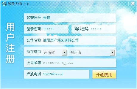 按照提示将公司信息填写完整,然后点击“开通使用”,立刻进入易房大师系统!一步操作,轻松搞定!进入系统之后,系统自动为您配置角色!