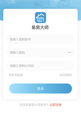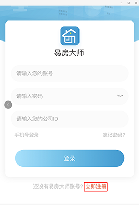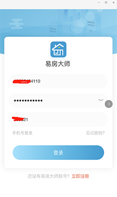回到易房大师账号登录界面,输入刚刚注册的易房大师账号和密码,点击登录,就可以登录使用注册易房大师房产中介管理系统了;