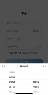 进入易房大师账号注册界面。我们就可以填写账号信息了。我们需要填写手机号、验证码、密码、账号信息、城市选择等;